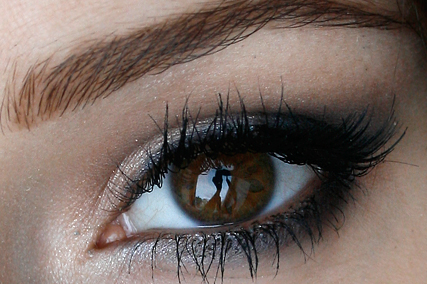 Megan Fox nosi oczywiście sztuczne rzęsy więc i my je dolepimy, jednak zdecydujemy sie na rzęsy tylko w zewnetrznych kącikach- możemy przyciąć zwykłe sztuczne rzęsy lub kupic specjalne. Jeśli nasze rzesy są bardzo krótkie naklejamy całe sztuczne rzęsy i dodajemy ekstra kępki z zewnetrznych kącikach.