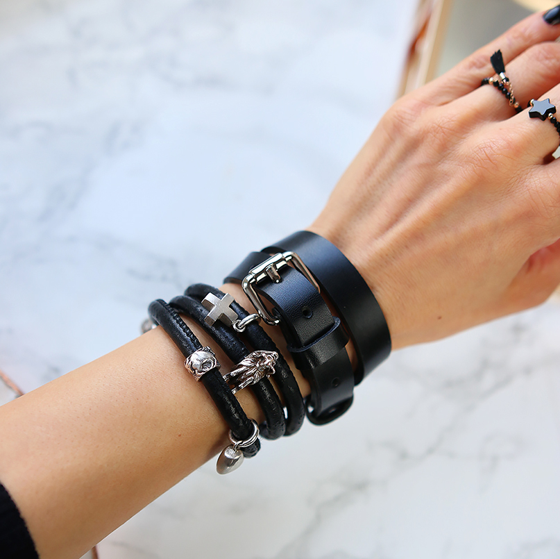 Obok moje biżuteryjne, czarne alter ego:) Tutaj bransoletki z BBelements o które parę z Was mnie pytało. Kocham połączenie czerni i srebra a na tę markę trafiłam na któryś Ekocudach albo świątecznej edycji targów w Forum. Szukałam czegoś takiego, prostego i uniwersalnego więc wtedy kupiłam dwie proste bransoletki. Mam wrażenie, że na targach mają zawsze o wiele większy wybór niż na stronie:D